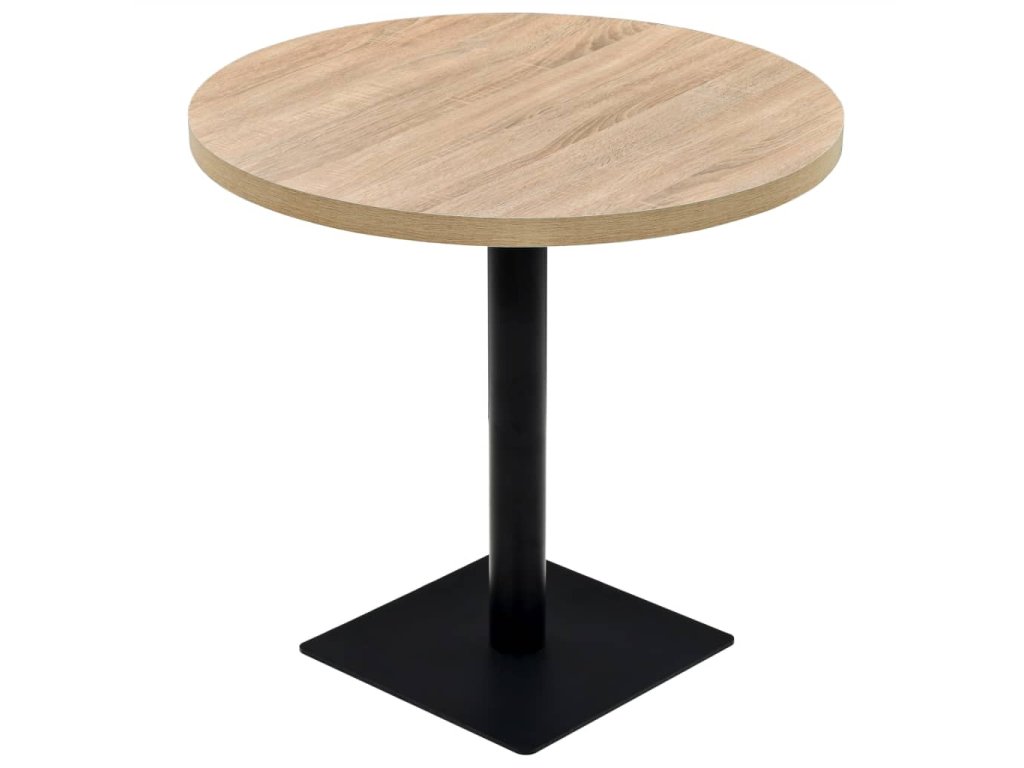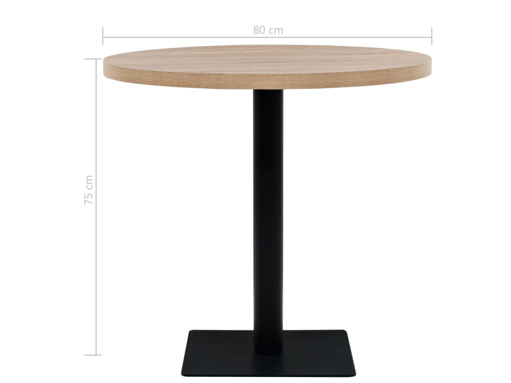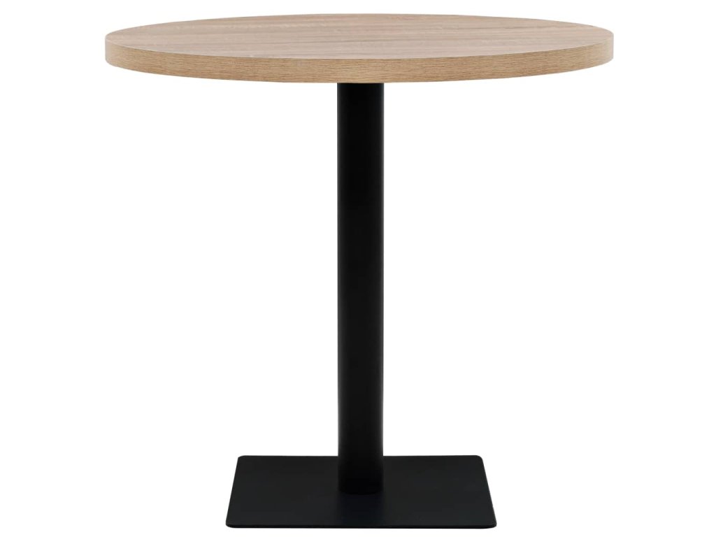 Horní deska stolu je vyrobena z MDF s povrchovou zrnitou úpravou a je podepřena ocelovou nohou a základnou. Snadno se čistí pouze vlhkým hadříkem. Použijte jej jako samotný kus ve svém interiéru, restauraci, kavárně nebo baru.