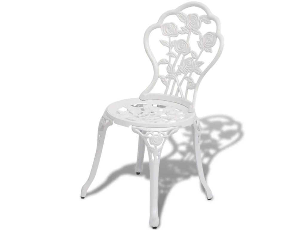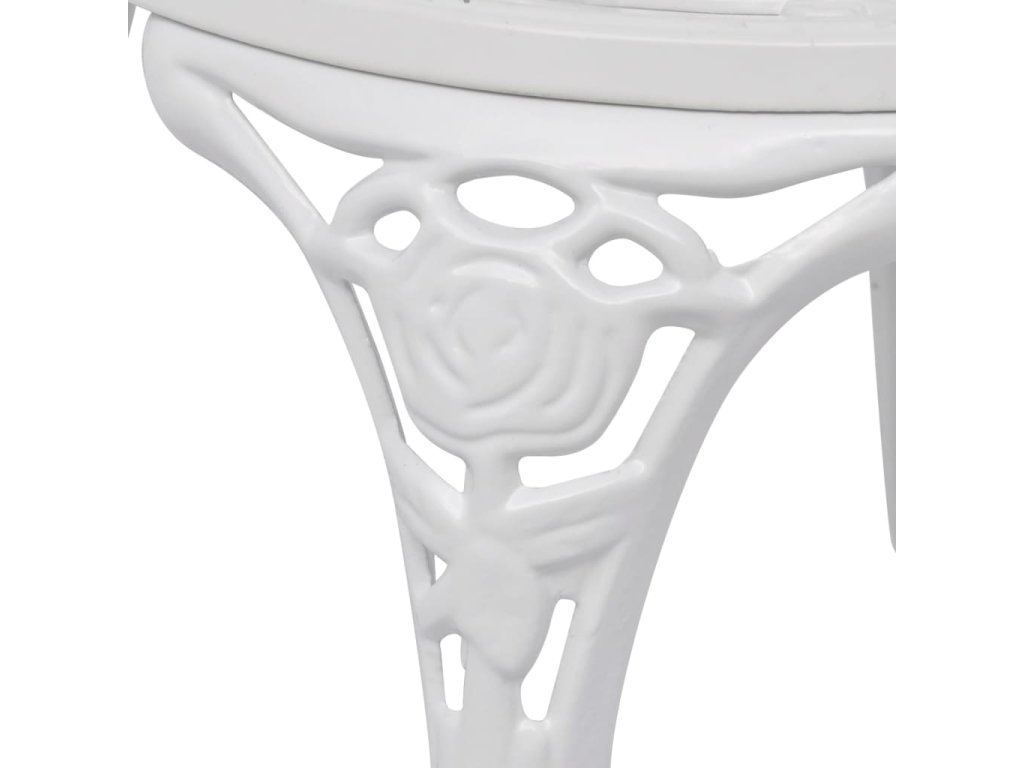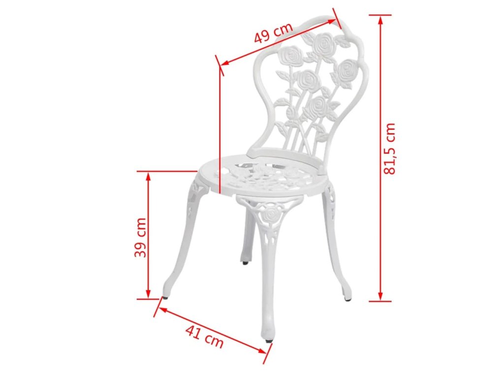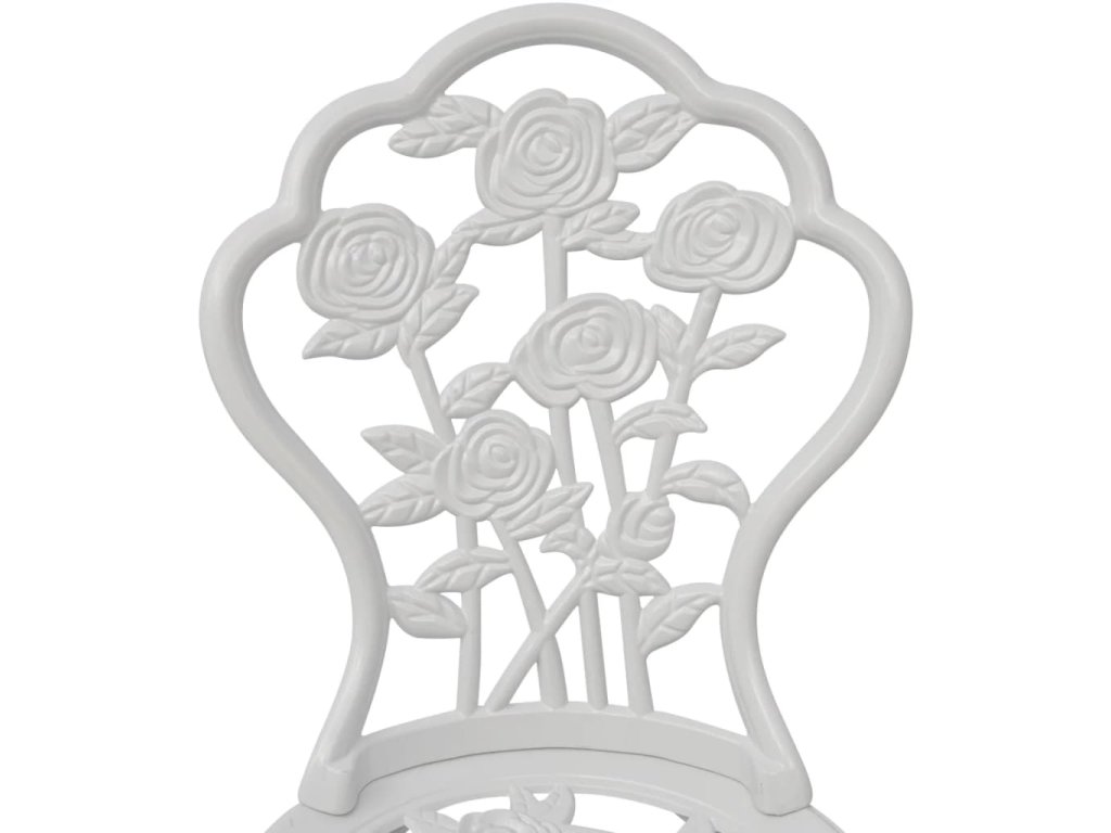 Bistro set je vyrobený z vysoce kvalitního litého hliníku, který je odolný vůči povětrnostním vlivům a vysoce rezistentní. Robustní litinové nohy zaručují stabilitu nábytku. Do detailu propracovaný květinový vzor přinese na každou zahradu, dvorek či do zimní zahrady romantický šarm.