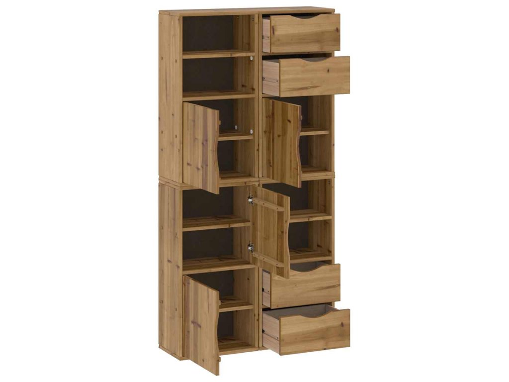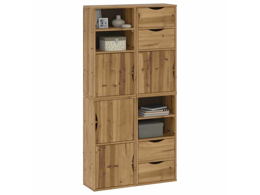 - 1 x boční skříňka (se 2 zásuvkami a 2 otevřenými policemi)
