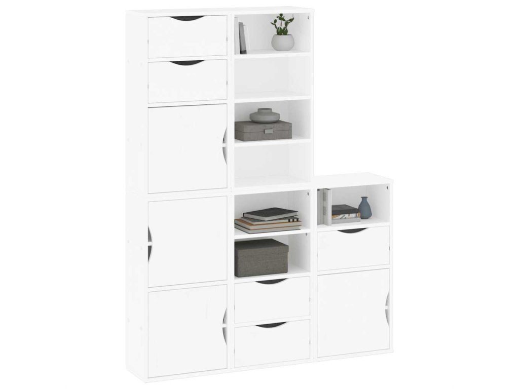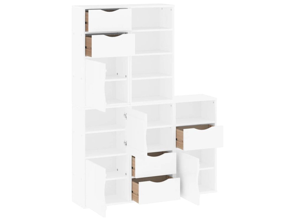 - 1 x boční skříňka (se 2 zásuvkami a 2 otevřenými policemi)
