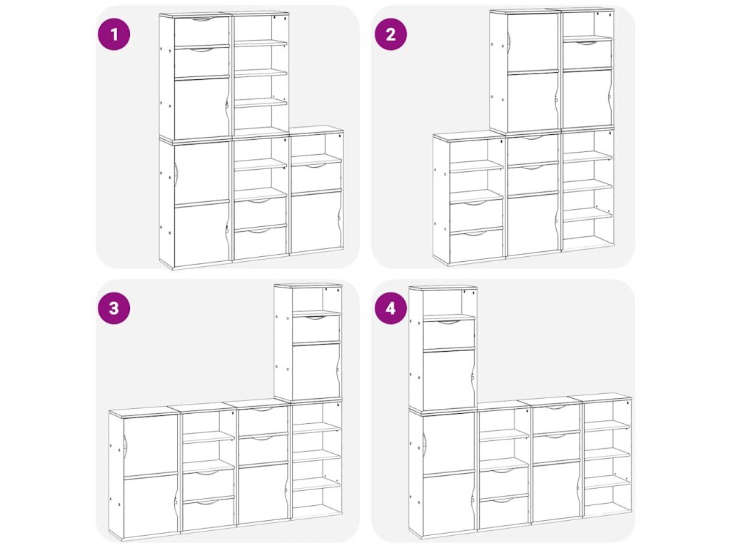 - Modulární konstrukce: Tyto skříně nabízejí modulární stohování a univerzální možnosti uspořádání, včetně vertikálních věží, uspořádání ve tvaru písmene L a horizontálních řad, což vám umožní přizpůsobit je vašim potřebám.