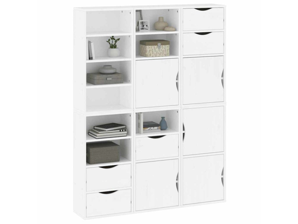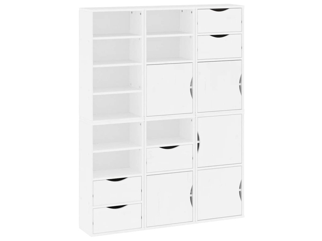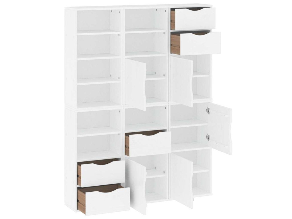 - 1 x boční skříňka (se 2 zásuvkami a 2 otevřenými policemi)