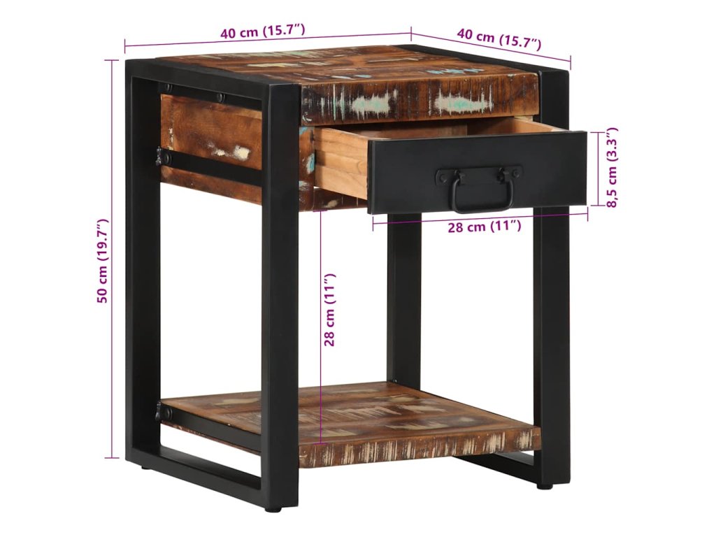 - Materiál: masivní recyklované dřevo se smíšeným barevným povrchem