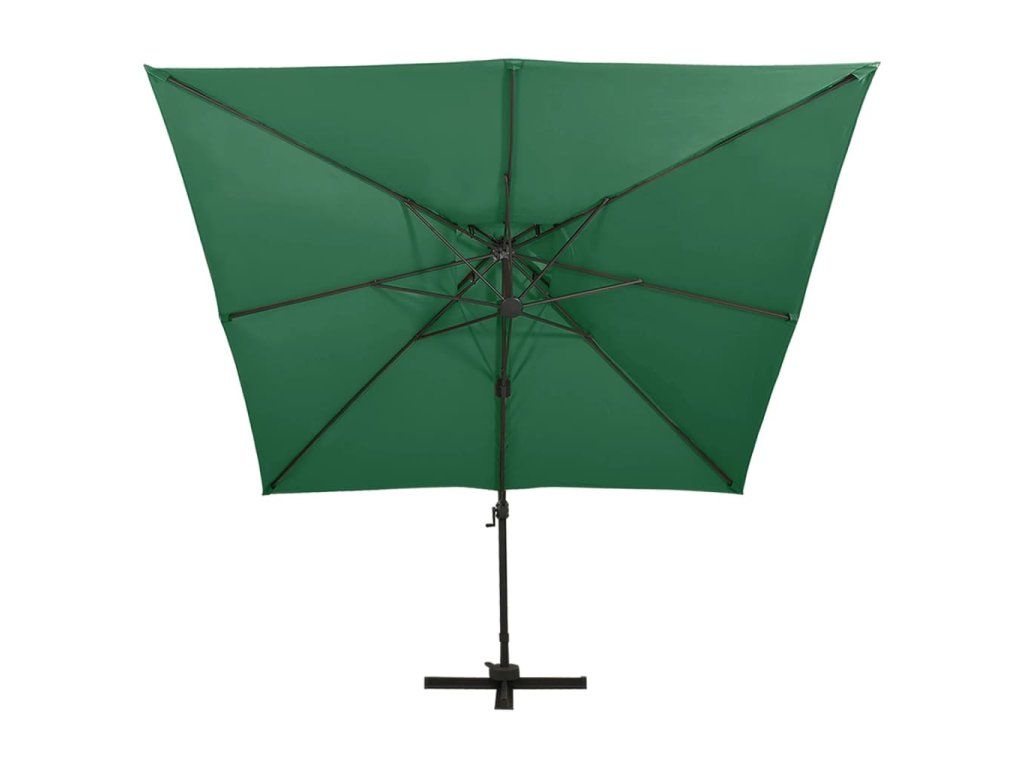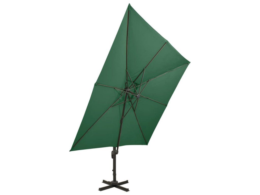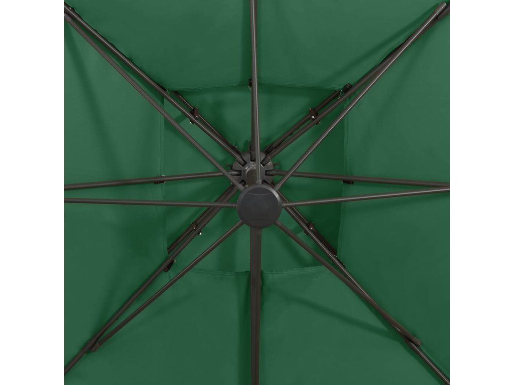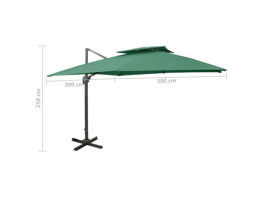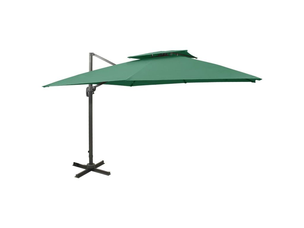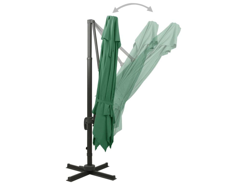 Stříška slunečníku je vyrobená z polyesterové tkaniny, která nebledne a nepropouští škodlivé UV záření, takže vám poskytne optimální ochranu před sluncem. Navíc se snadno čistí. Křížová základna zaručuje lepší stabilitu. Exkluzivní konstrukce vám umožní slunečník naklánět a otáčet o 360 stupňů, aby blokoval slunce v každé situaci. Silná hliníková tyč s 8 žebry zajišťuje, že se slunečník nehýbe a vydrží vám dlouho sloužit. Zahradní slunečník je vybavený klikovým mechanismem, dá se tedy bez námahy otevírat i zavírat. Design s dvojitou stříškou napomáhá lepší ventilaci.