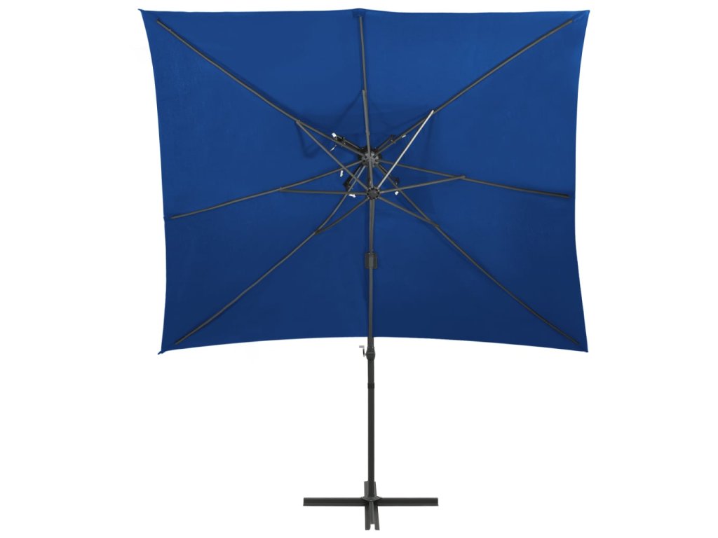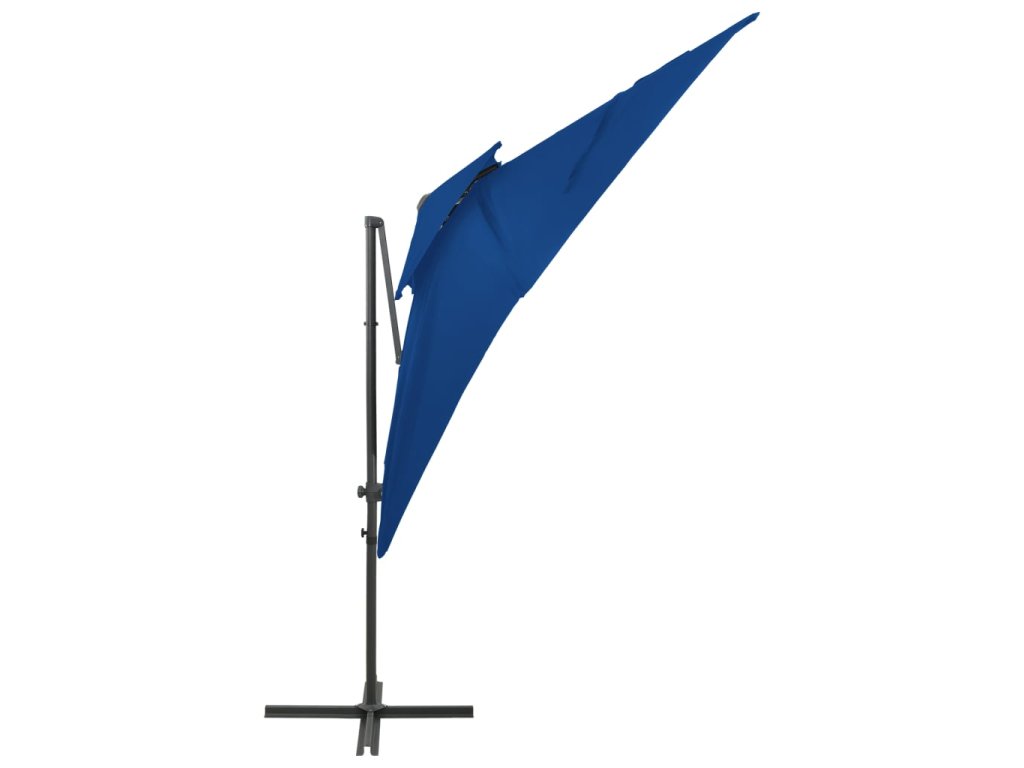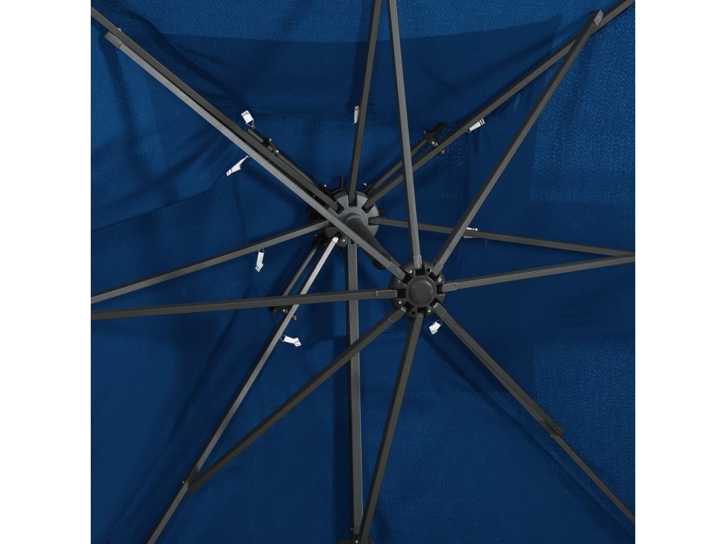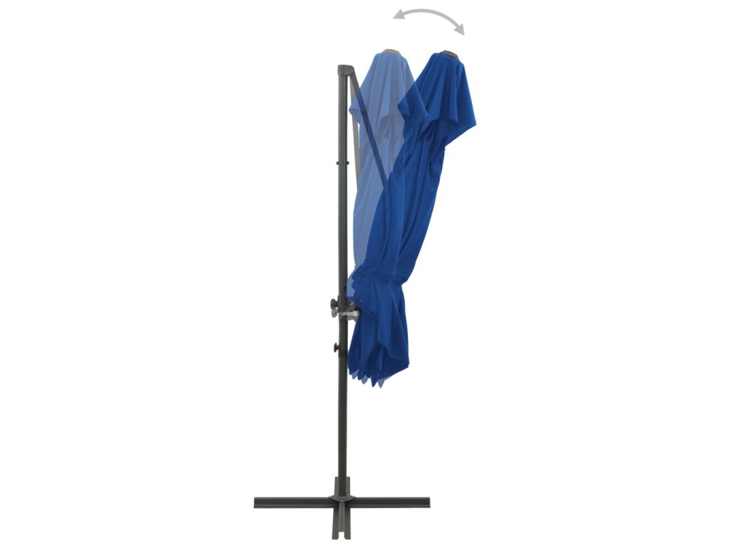 Stříška slunečníku je vyrobená z polyesterové tkaniny, která nebledne a nepropouští škodlivé UV záření, takže vám poskytne optimální ochranu před sluncem. Navíc se snadno čistí. Křížová základna zaručuje lepší stabilitu. Exkluzivní konstrukce vám umožní slunečník naklánět a otáčet o 360 stupňů, aby blokoval slunce v každé situaci. Silná hliníková tyč s 8 žebry zajišťuje, že se slunečník nehýbe a vydrží vám dlouho sloužit. Zahradní slunečník je vybavený klikovým mechanismem, dá se tedy bez námahy otevírat i zavírat. Design s dvojitou stříškou napomáhá lepší ventilaci.