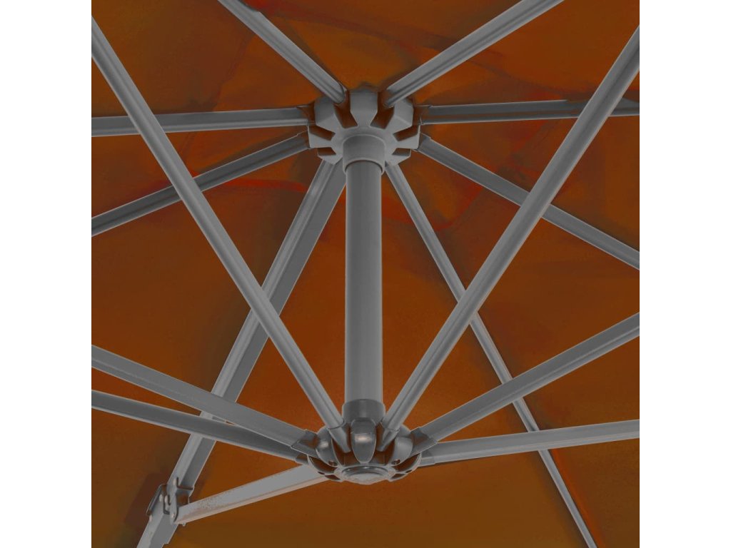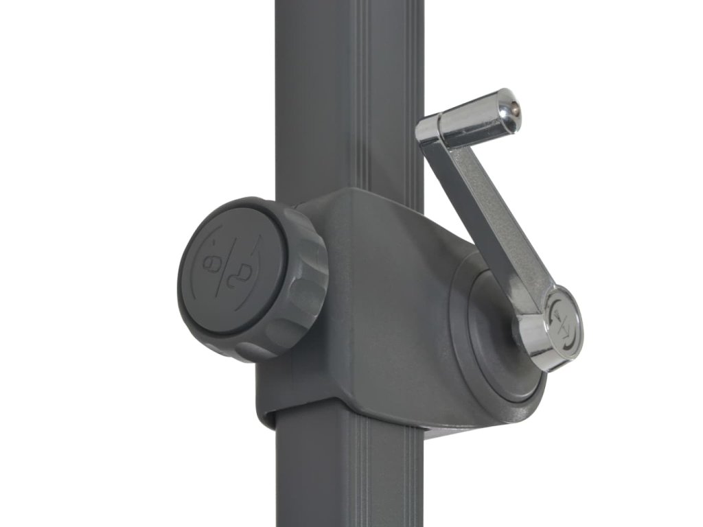Stříška slunečníku je vyrobená z polyesterové tkaniny, která nepropouští škodlivé UV záření a nevybledne, takže vám poskytne optimální ochranu před sluncem. Navíc se snadno čistí. Slunečník je vybavený křížovou základnou, která zaručuje lepší stabilitu. Exkluzivní konstrukce vám umožní ho naklánět a otáčet o 360 stupňů, aby blokoval slunce. Silná hliníková tyč s 8 odolnými žebry zajišťuje, že se slunečník nehýbe a hodně toho vydrží. Zahradní slunečník disponuje klikovým mechanismem, což znamená, že se snadno otevírá i zavírá.