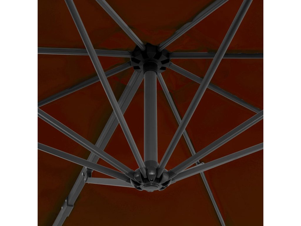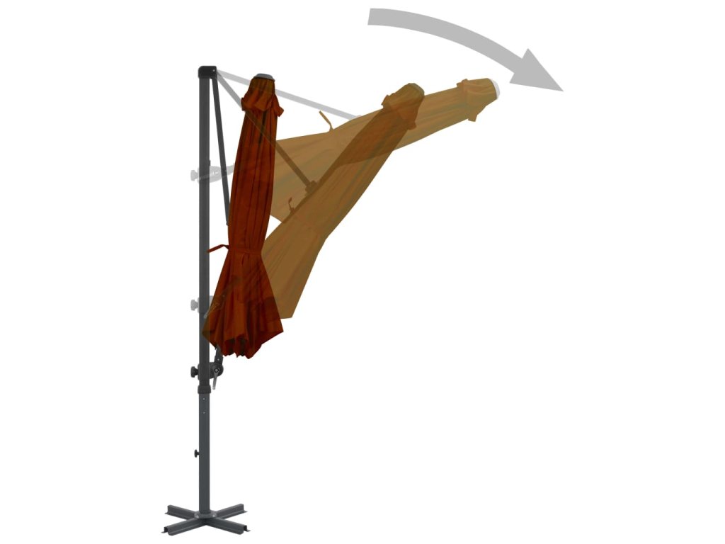 Stříška slunečníku je vyrobená z polyesterové tkaniny, která nepropouští škodlivé UV záření a nevybledne, takže vám poskytne optimální ochranu před sluncem. Navíc se snadno čistí. Exkluzivní konstrukce vám umožní slunečník naklánět a otáčet o 360 stupňů, aby blokoval slunce z jakéhokoli úhlu. Silná hliníková tyč spolu s 8 odolnými žebry zajišťuje, že se slunečník nehýbe a hodně toho vydrží. Zahradní slunečník disponuje klikovým mechanismem, takže se snadno otevírá i zavírá.