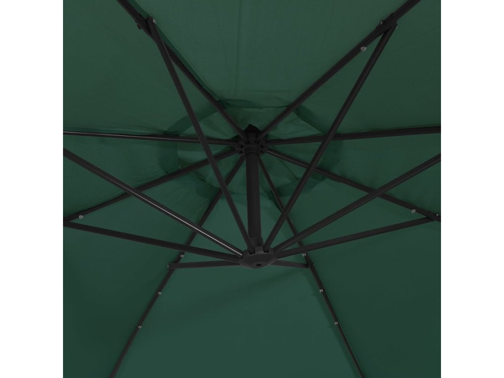 Stříška slunečníku je vyrobena z polyesterové tkaniny, která nepropouští škodlivé UV záření a nevybledne, a poskytne vám optimální ochranu před sluncem. Navíc se snadno čistí. Je vybavena 24 solárně napájenými LED světly, která po západu slunce automaticky osvětlí váš venkovní prostor a navodí v něm útulnou a romantickou atmosféru. Součástí je také pevná křížová základna pro větší stabilitu. Exkluzivní konstrukce tohoto slunečníku vám umožní naklonit ho tak, aby blokoval slunce, jak klesá za obzor. Silná kovová tyč s 8 odolnými žebry zajišťuje, že se slunečník nehýbe a hodně toho vydrží. Náš zahradní slunečník disponuje klikovým mechanismem, což znamená, že se snadno otevírá i zavírá. Sestavení výrobku je snadné.