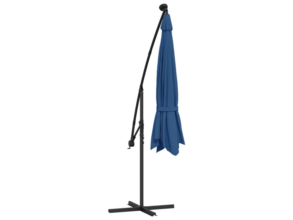 Stříška slunečníku je vyrobená z polyesterové tkaniny, která nepropouští škodlivé UV záření a nevybledne, poskytne vám proto optimální ochranu před sluncem. Navíc se snadno čistí. Je opatřená 24 solárně napájenými LED světly, která po západu slunce automaticky osvětlí váš venkovní prostor a navodí v něm útulnou a romantickou atmosféru. Součástí je také pevná křížová základna pro větší stabilitu. Exkluzivní konstrukce tohoto slunečníku vám umožní naklonit ho tak, aby blokoval slunce, jak klesá za obzor. Silná kovová tyč s 8 odolnými žebry zajišťuje, že se slunečník nehýbe a hodně toho vydrží. Náš zahradní slunečník disponuje klikovým mechanismem, což znamená, že se jednoduše otevírá i zavírá.