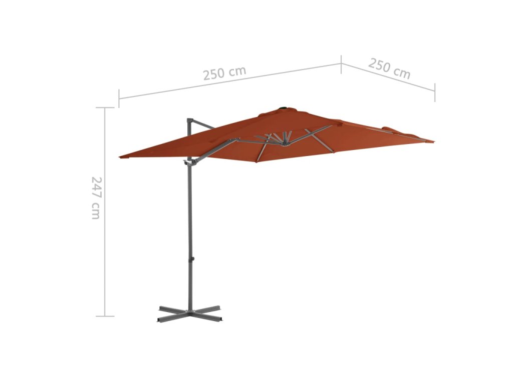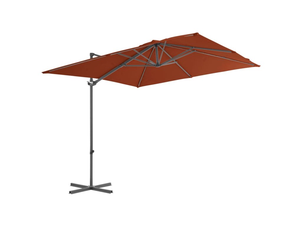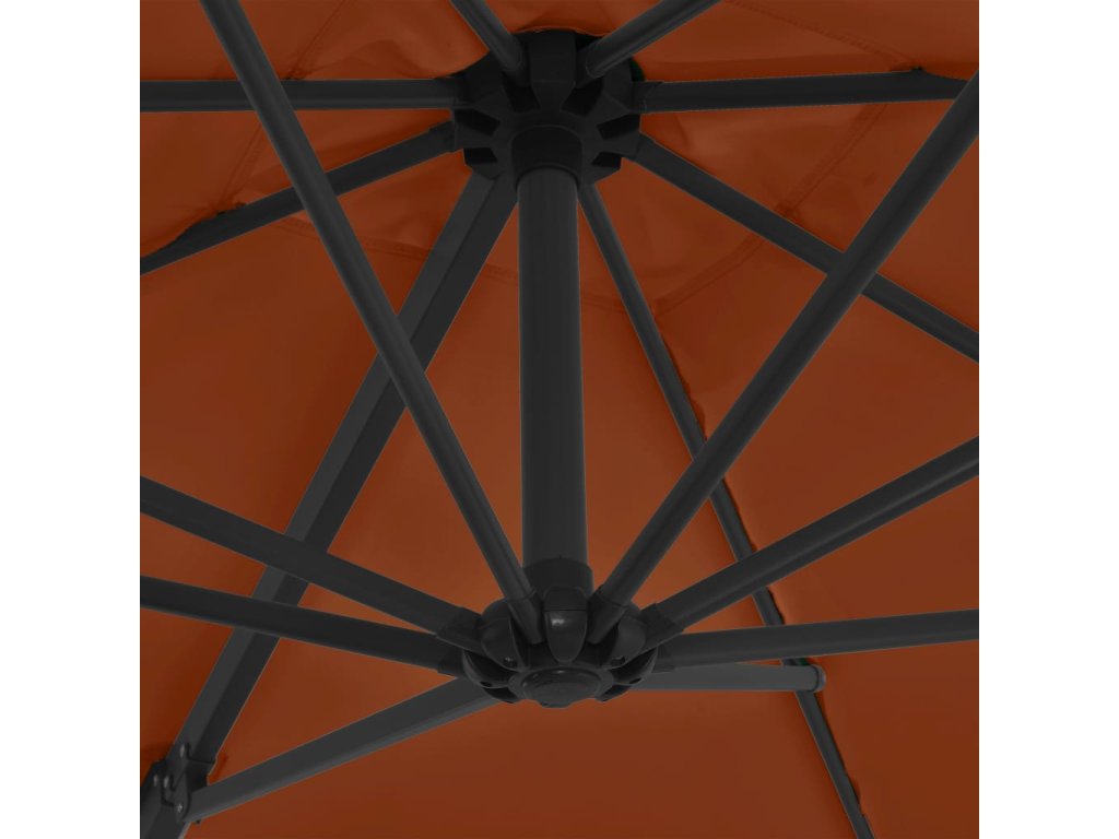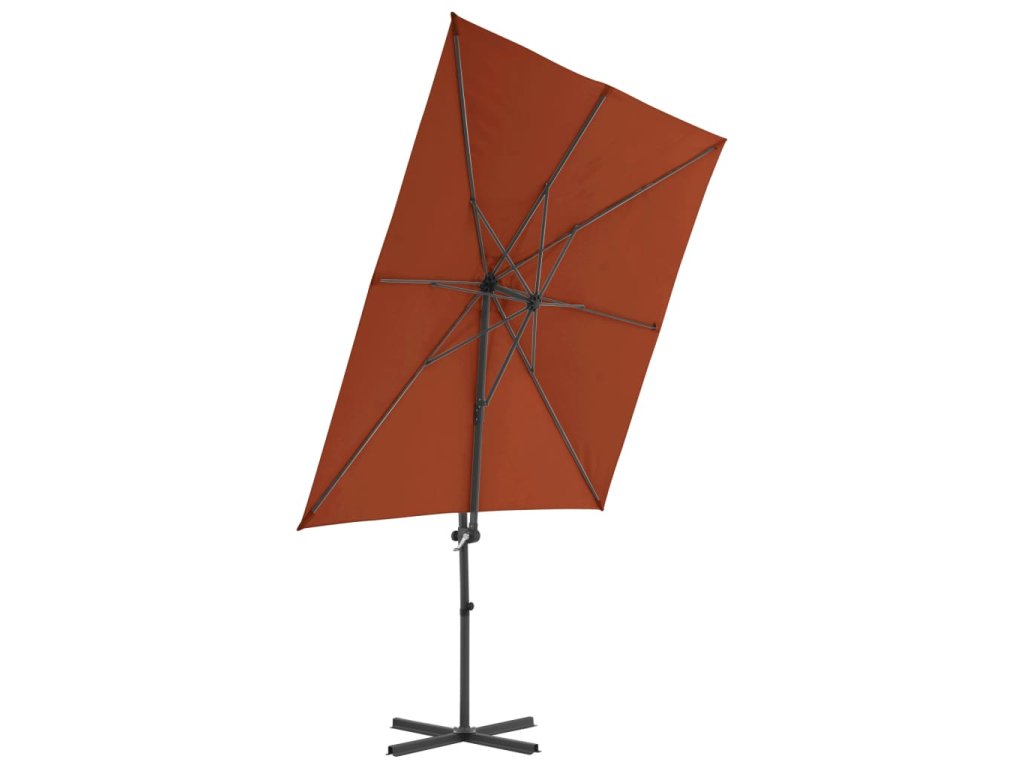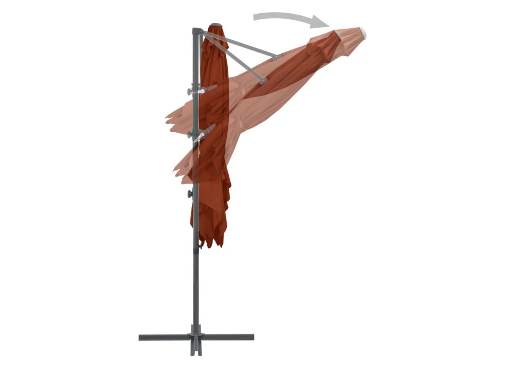 Stříška slunečníku je vyrobená z polyesterové tkaniny, která nebledne a nepropouští škodlivé UV záření, takže vám poskytne optimální ochranu před sluncem. Navíc se snadno čistí. Slunečník je vybavený křížovou základnou, která zaručuje lepší stabilitu. Exkluzivní konstrukce vám umožní ho naklánět a otáčet o 360 stupňů, aby optimálně blokoval slunce. Silná hliníková tyč s 8 odolnými žebry zajišťuje, že se slunečník nehýbe a hodně toho vydrží. Zahradní slunečník disponuje klikovým mechanismem, takže se snadno otevírá i zavírá.