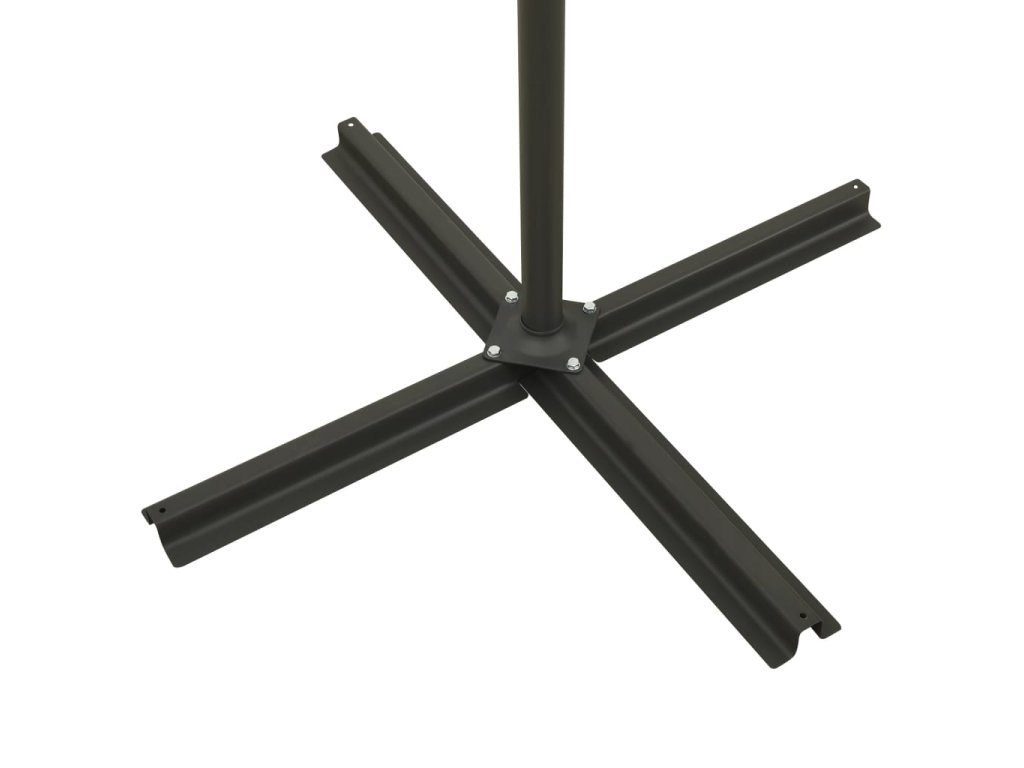 Potah slunečníku je vyrobený z neblednoucího polyesteru chránícího před UV zářením a poskytuje vám optimální ochranu před sluncem a snadno se čistí. Slunečník je vybaven pevnou křížovou základnou, která zaručuje lepší stabilitu. Exkluzivní konstrukce vám umožní zahradní slunečník naklánět a otáčet o 360 stupňů, aby blokoval slunce v jakémkoli úhlu. Silná hliníková tyč s 8 žebry slunečníku zajišťuje stabilitu a dlouhou životnost. Náš zahradní slunečník disponuje klikovým mechanismem, což znamená, že se snadno otevírá i zavírá. Terasový slunečník rovněž disponuje 24 LED světly, která po západu slunce osvětlí váš venkovní prostor a vytvoří romantickou atmosféru.