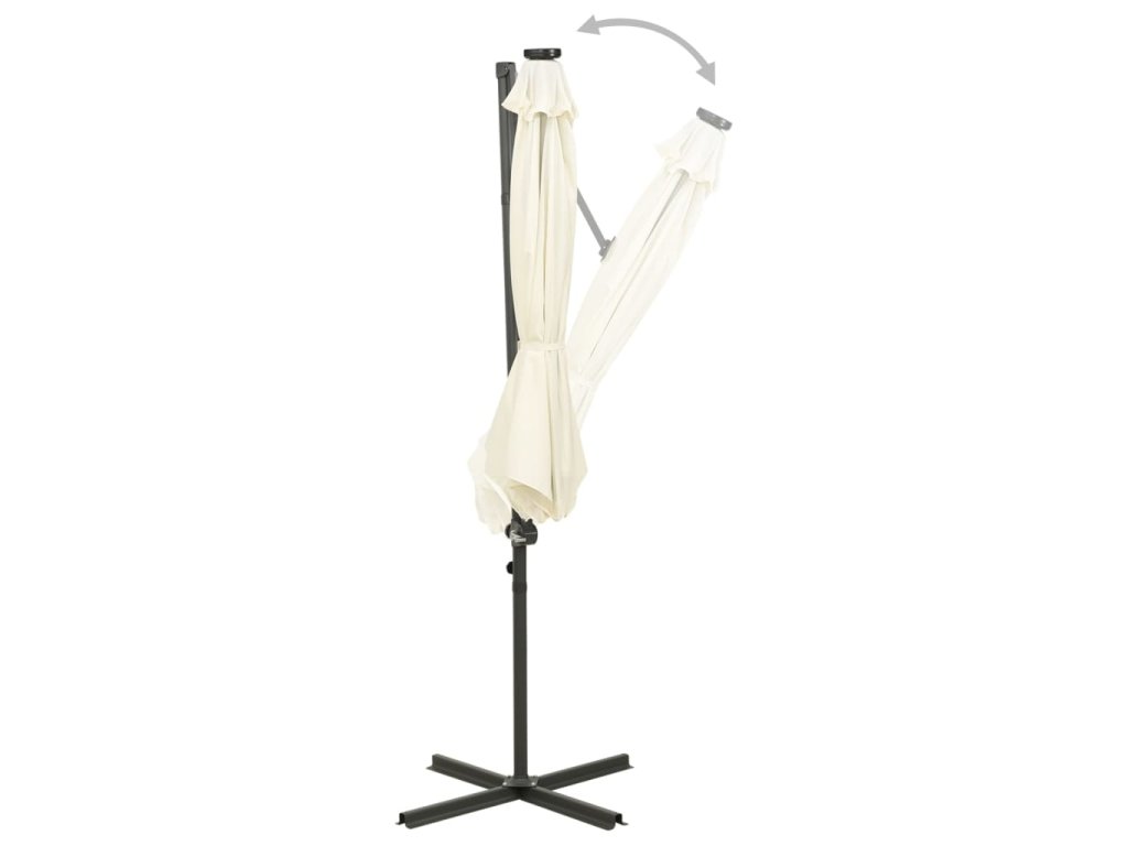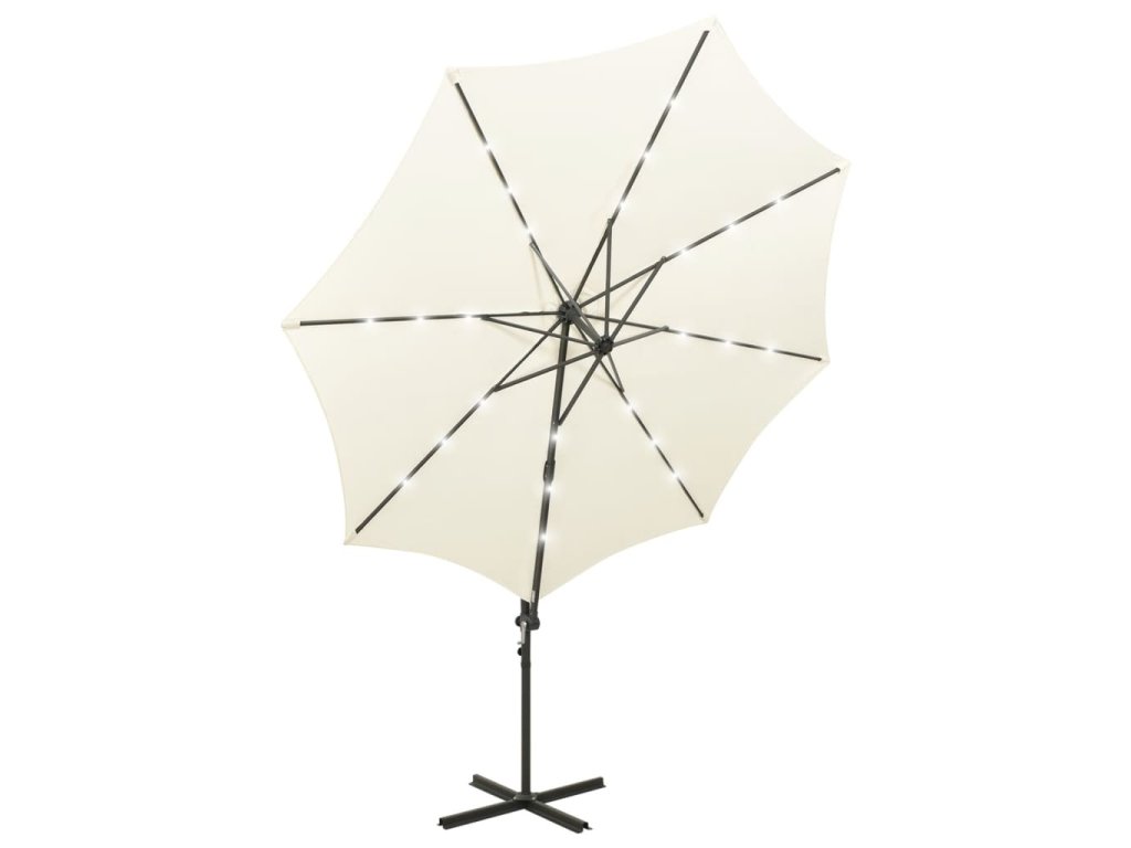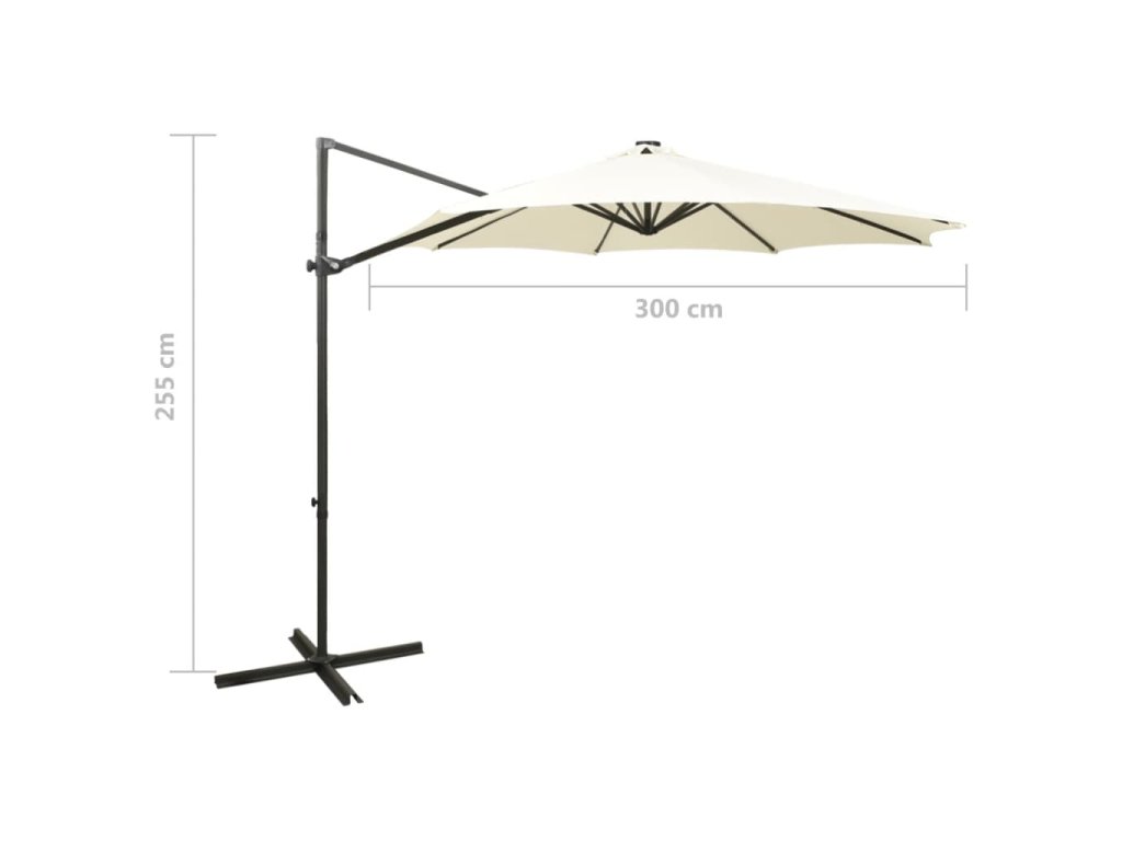 Tento elegantní boční zahradní slunečník s LED světly je skvělou volbou, která vám poskytne stín, a ochrání vás tak před sluníčkem a jeho škodlivým UV zářením. Když zapadne slunce, LED diody osvětlí váš venkovní prostor.
