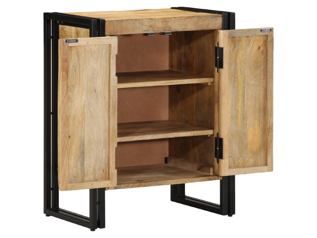 - Odolné materiály: Vyrobený z masivního hrubého mangového dřeva a pevného kovového rámu, je postavený, aby vydržel každodenní používání.