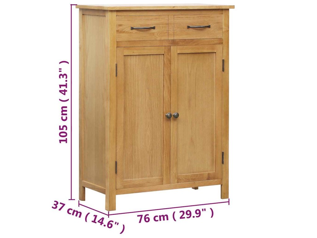 Botník je vyrobený z masivního dubového dřeva s přírodní povrchovou úpravou, která mu propůjčuje rafinovaný vzhled. Skříňka na boty je tudíž velmi odolná a vydrží dlouhá léta používání. Uvnitř najdete 4 poličky a 1 zásuvku, které vám poskytnou spoustu místa k uložení vašich bot, hraček, klíčů a dalších věcí. Jedná se tedy o dokonalé a moderní úložné řešení do vaší ložnice, obývacího pokoje nebo na chodbu.