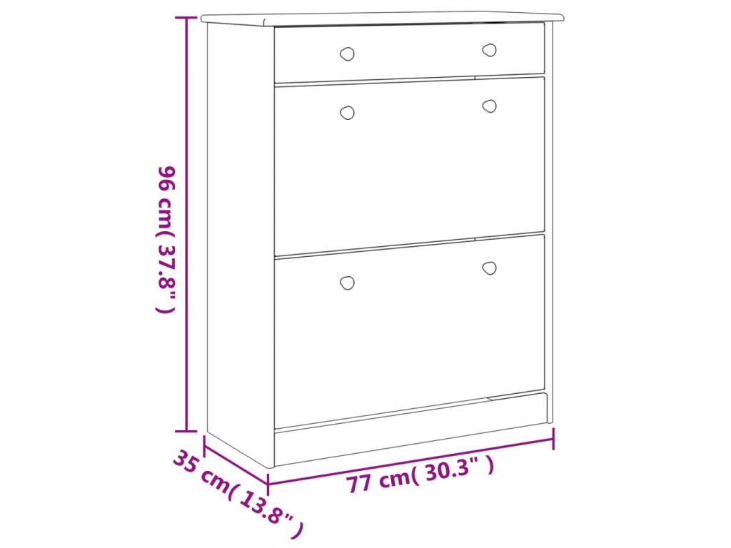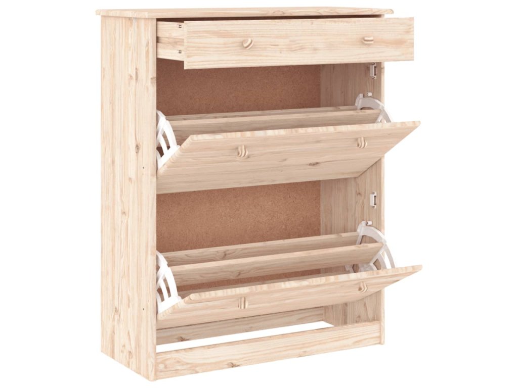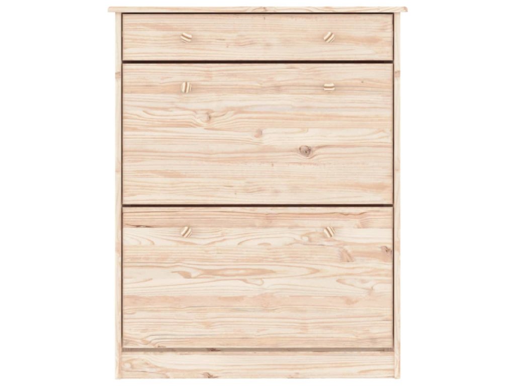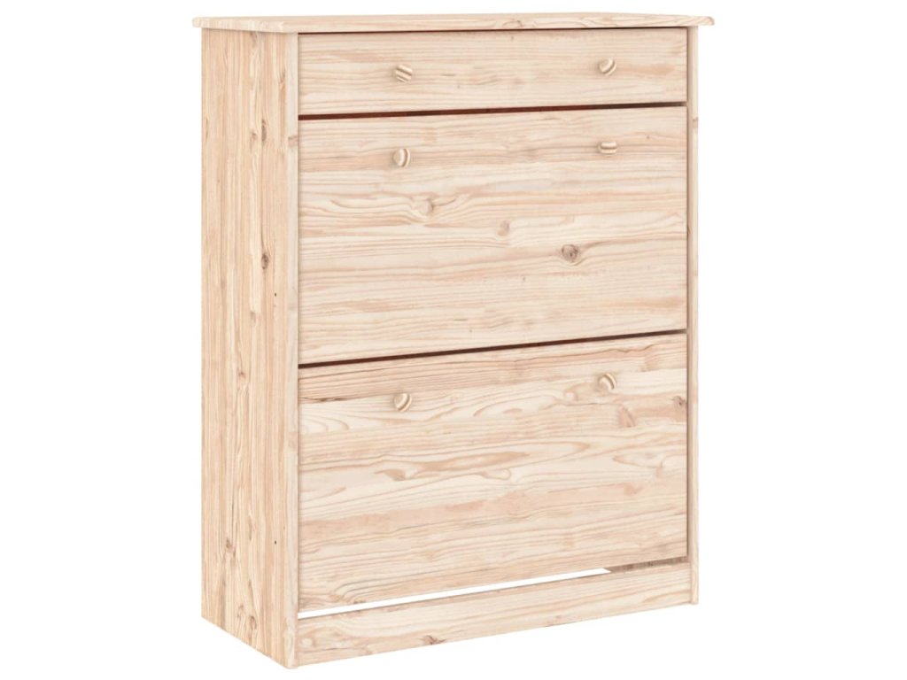 - Masivní borové dřevo: Masivní borové dřevo je krásný přírodní materiál. Borové dřevo má rovnou kresbu a obsahuje suky, které materiálu dodávají jeho charakteristický, rustikální vzhled. Botník je vyroben z masivního borového dřeva a je odolný a robustní.