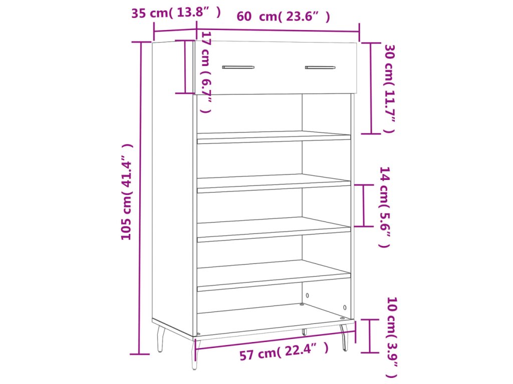 - Spousta úložného prostoru: Botník má 1 zásuvku a 5 otevřených přihrádek, poskytuje tedy spoustu místa na uložení všech typů obuvi.
