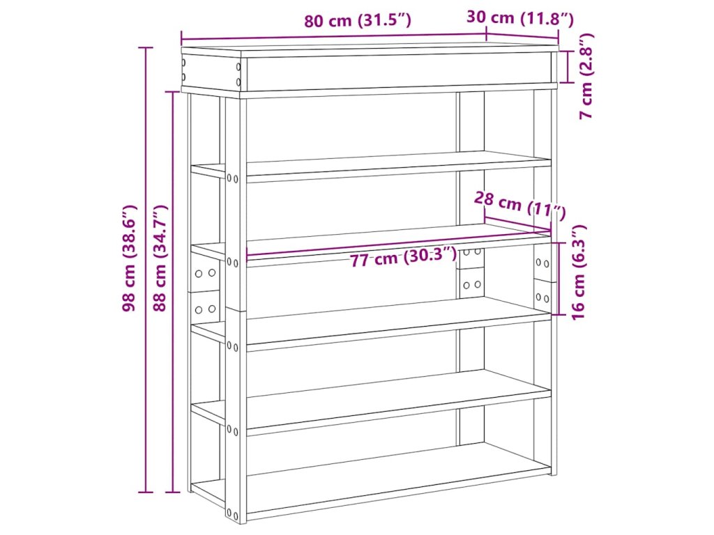 - Dostatek úložného prostoru: Regál na boty má police, které poskytují dostatek prostoru pro uložení obuvi. S tímto praktickým botníkem už se nebudete muset zlobit, že máte boty rozházené po celé chodbě.