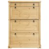 - Masivní borové dřevo: Masivní borové dřevo je krásný přírodní materiál. Borové dřevo má rovnou kresbu a obsahuje suky, které materiálu dodávají jeho charakteristický, rustikální vzhled. Botník je vyroben z masivního borového dřeva a je odolný a robustní.