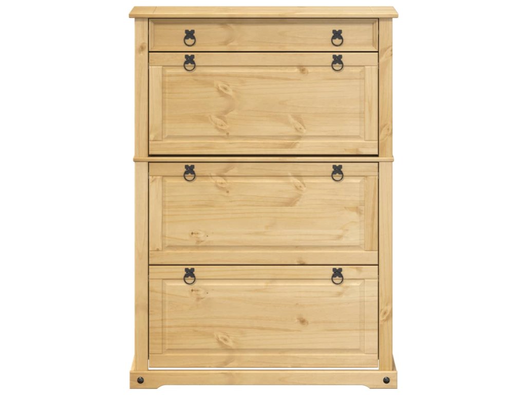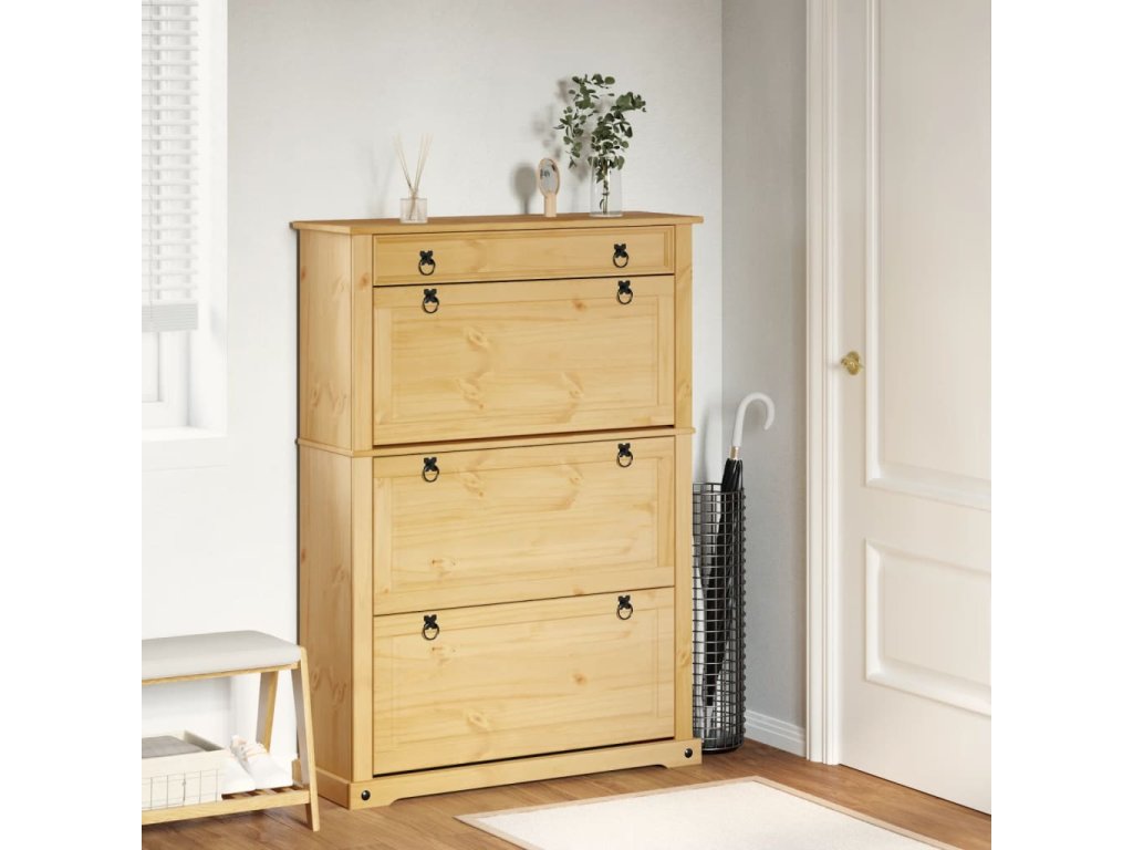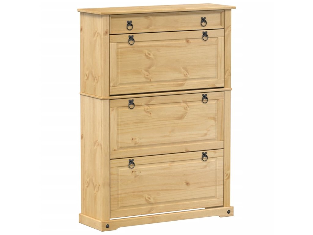 - Masivní borové dřevo: Masivní borové dřevo je krásný přírodní materiál. Borové dřevo má rovnou kresbu a obsahuje suky, které materiálu dodávají jeho charakteristický, rustikální vzhled. Botník je vyroben z masivního borového dřeva a je odolný a robustní.