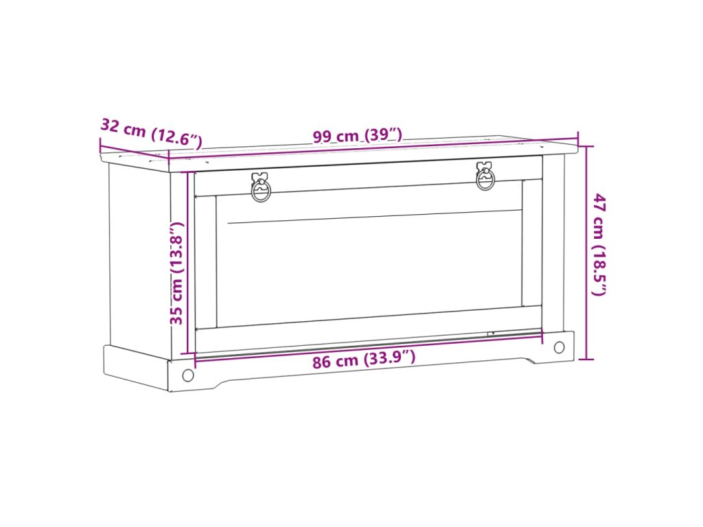 - Rozměry: 99 x 32 x 47 cm (Š x H x V)