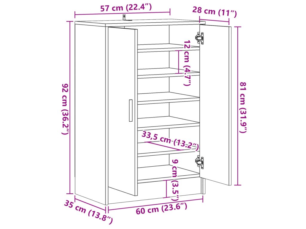 - Speciální design: Díky dveřím nebudou vaše boty zbytečně na očích a budou chráněné před prachem. Botník lze postavit na zem nebo zavěsit na stěnu podle vašich potřeb.