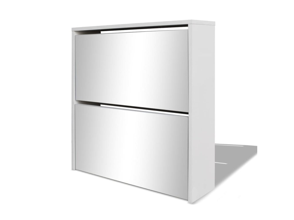 Tento zrcadlový botník má dvě vyklápěcí přihrádky, z nichž každá pojme 3 až 4 páry obuvi. Botník se montuje přímo na stěnu. Tato pevná a odolná předsíňová skříňka je vyrobena z vysoce kvalitního materiálu a je velmi praktickým kusem nábytku, kde můžete úhledně a stylově ukládat své boty, aby nebyly poházené po bytě.