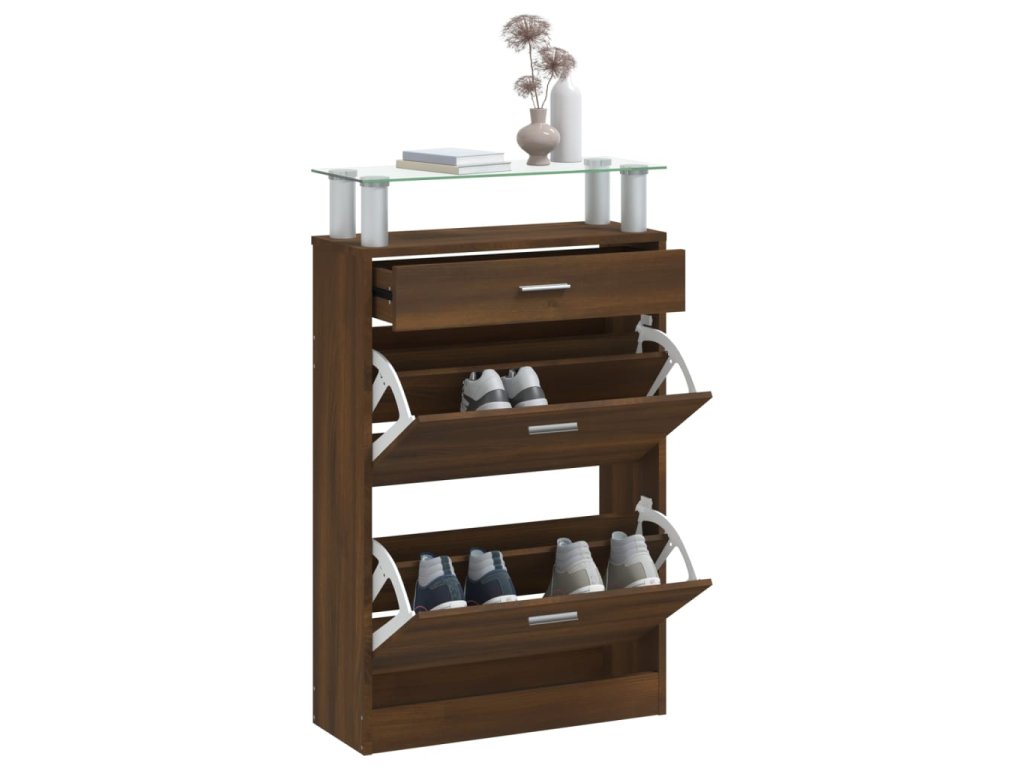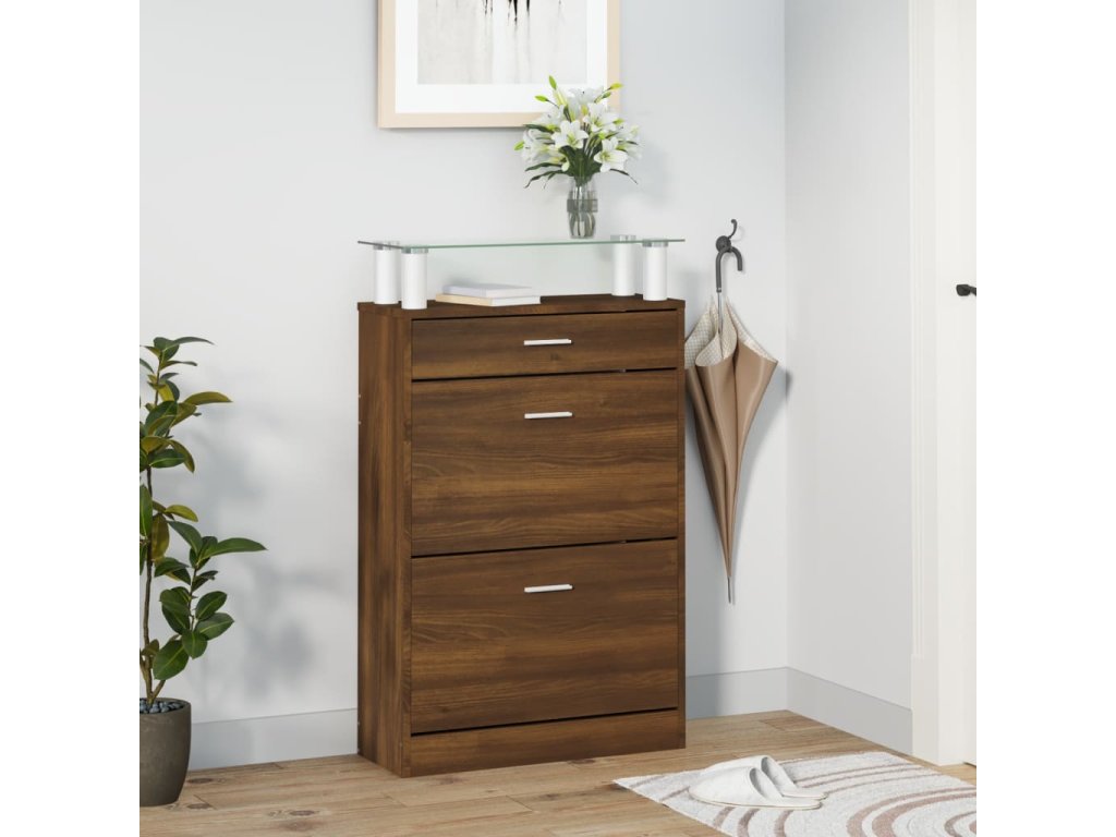 - Konstrukce vyklápěcí zásuvky: Díky vyklápěcím zásuvkám se tato skříňka na boty snadno otevírá a zavírá.
