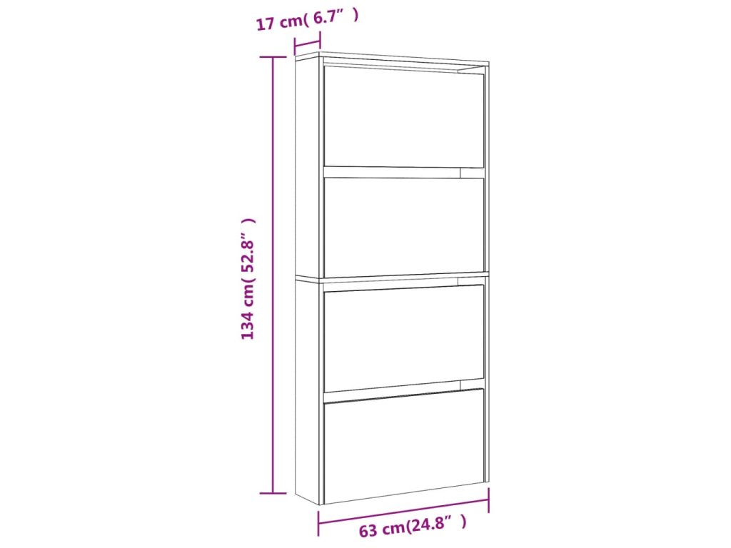 Tento 4patrový botník s moderním a stylovým designem je dokonalým kusem nábytku, kde si budete moct přehledně ukládat vaši obuv. Hodí se do předsíně, chodby, obývacího pokoje, ložnice a kamkoli jinde, kde si jen přejete.