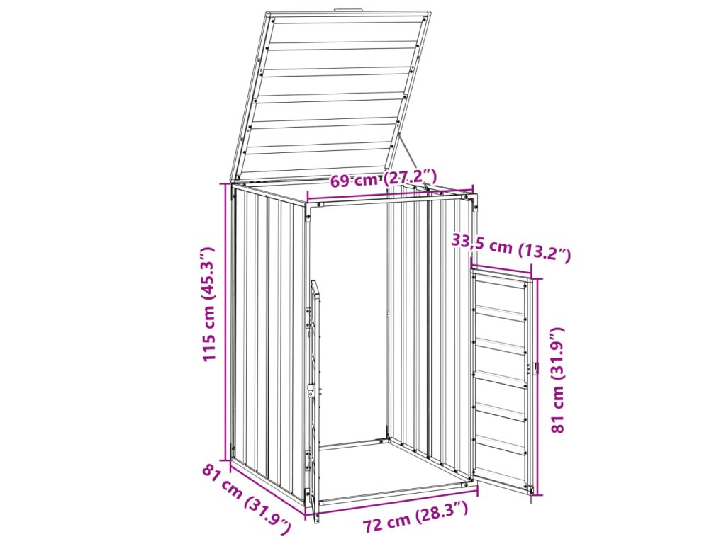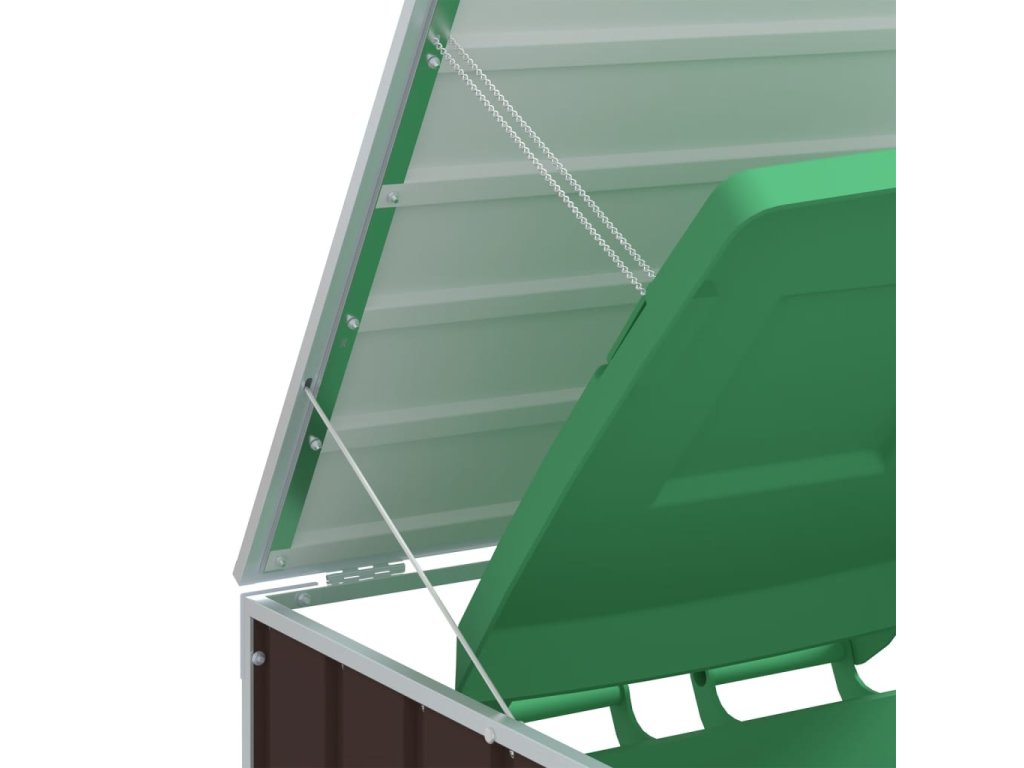 - Praktický mechanismus víka: Víko je opatřeno řetízky, které spojují víko popelnice s víkem boxu, takže se víko popelnice automaticky otevře, když zvednete víko boxu.