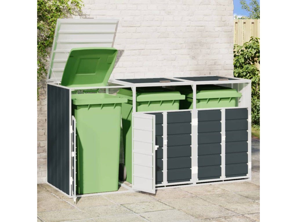 - Flexibilní konstrukce: Tento box na popelnice můžete rozšířit o další boxy přidáním dalších nástavců. Tyto nástavce lze zakoupit v našem obchodě.