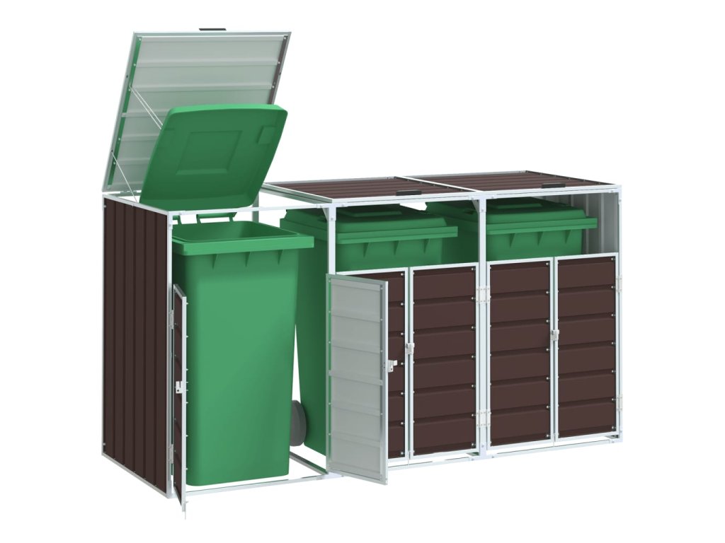 - Flexibilní konstrukce: Tento box na popelnice můžete rozšířit o další boxy přidáním dalších nástavců. Tyto nástavce lze zakoupit v našem obchodě.