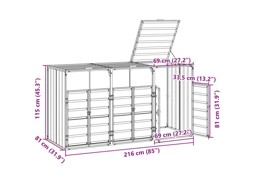 - Flexibilní konstrukce: Tento box na popelnice můžete rozšířit o další boxy přidáním dalších nástavců. Tyto nástavce lze zakoupit v našem obchodě.