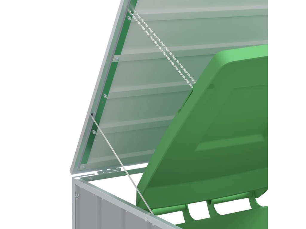 - Praktický mechanismus víka: Víko je opatřeno řetízky, které spojují víko popelnice s víkem boxu, takže se víko popelnice automaticky otevře, když zvednete víko boxu.