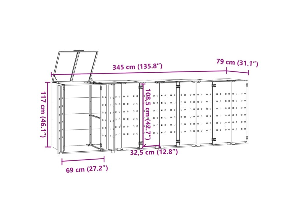 - Flexibilní konstrukce: Přidáním dalších nástavců můžete přístřešek na popelnice rozšířit a umístit do něj více popelnic. Tyto nástavce lze zakoupit v našem obchodě.