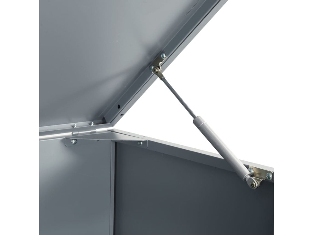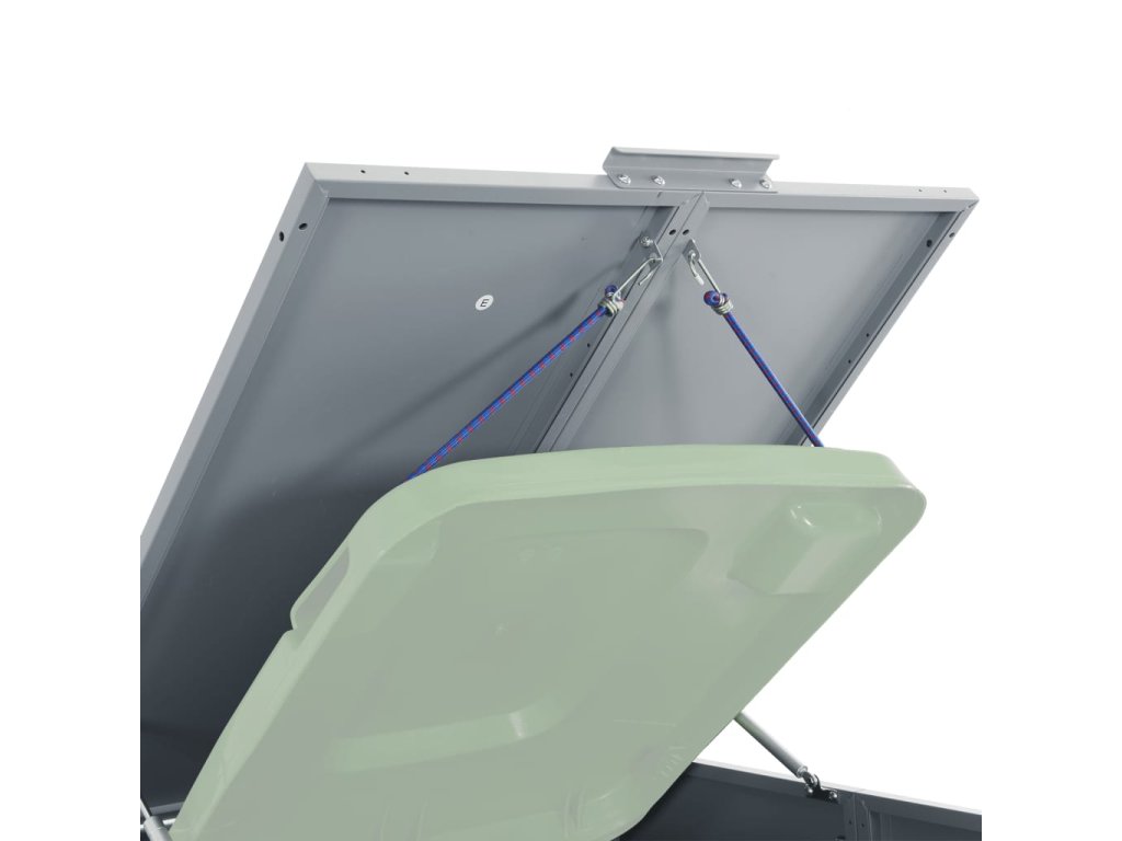 - Praktický mechanismus víka: Plynová pružina víka je opatřena gumovou šňůrou, která spojuje víko popelnice s víkem boxu, takže se víko popelnice automaticky otevře, když zvednete víko boxu.