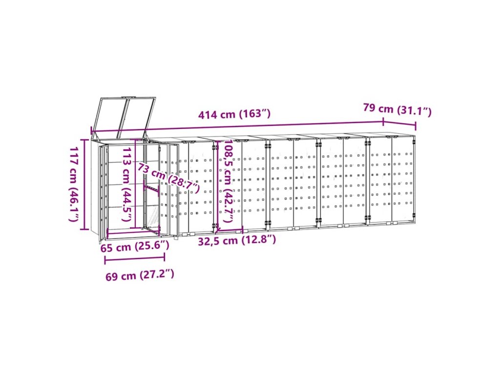 - Flexibilní konstrukce: Přidáním dalších nástavců můžete přístřešek na popelnice rozšířit a umístit do něj více popelnic. Tyto nástavce lze zakoupit v našem obchodě.
