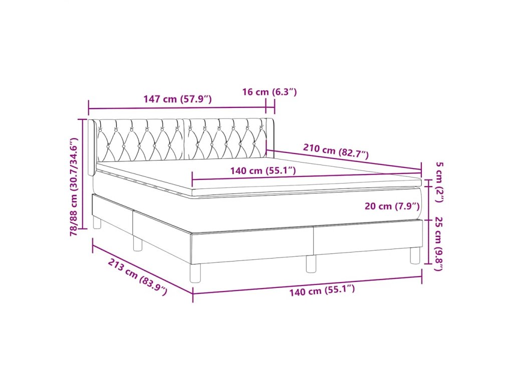 - Rozměry: 140 x 210 x 20 cm (Š x D x V)