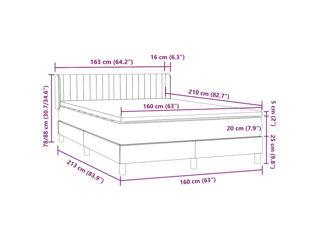 - Rozměry: 160 x 210 x 20 cm (Š x D x V)
