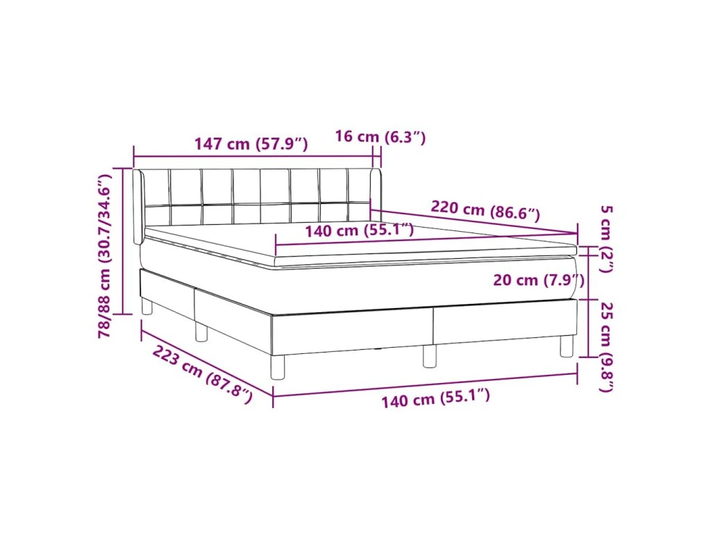 - Rozměry: 140 x 220 x 20 cm (Š x D x V)