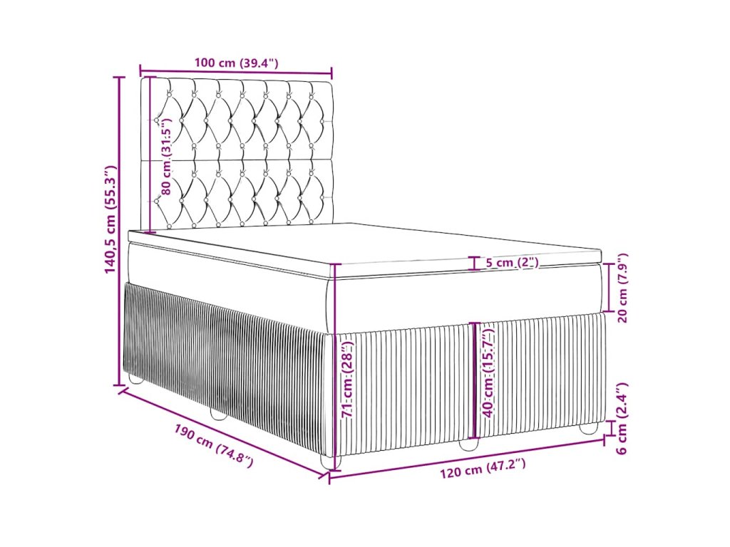 - Rozměry: 120 x 190 x 20 cm (Š x D x V)