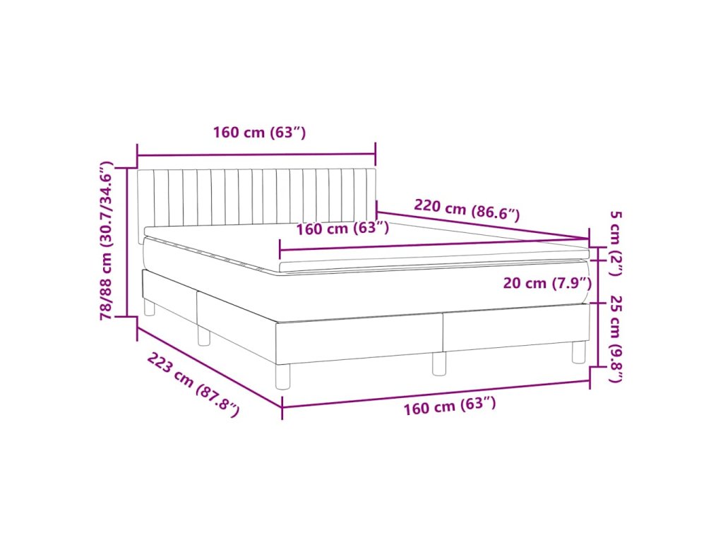 - Rozměry: 160 x 220 x 20 cm (D x Š x V)