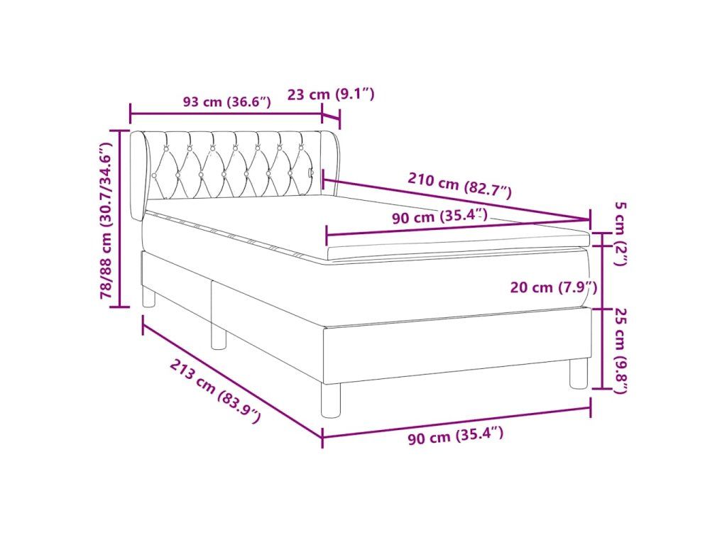 - Rozměry: 90 x 210 x 20 cm (Š x D x V)