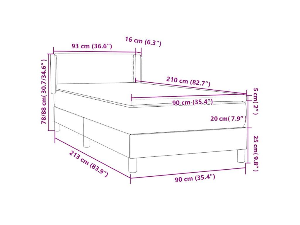 - Rozměry: 90 x 210 x 20 cm (Š x D x V)