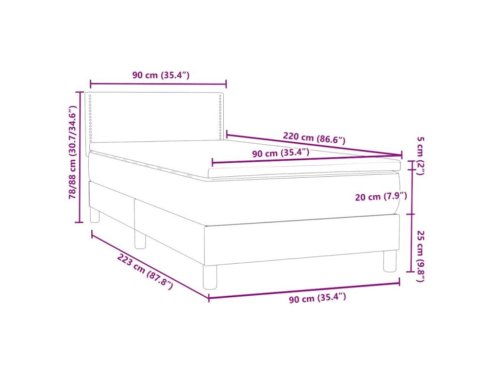 - Rozměry: 90 x 220 x 20 cm (Š x D x V)