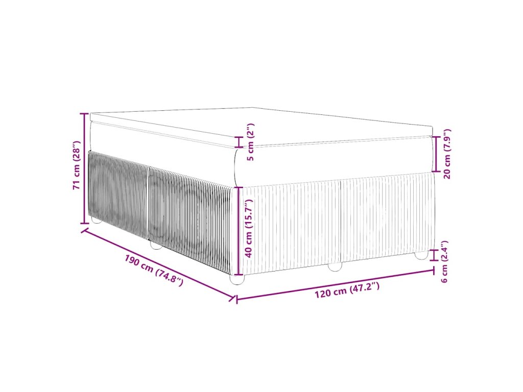 - Rozměry: 120 x 190 x 20 cm (Š x D x V)
