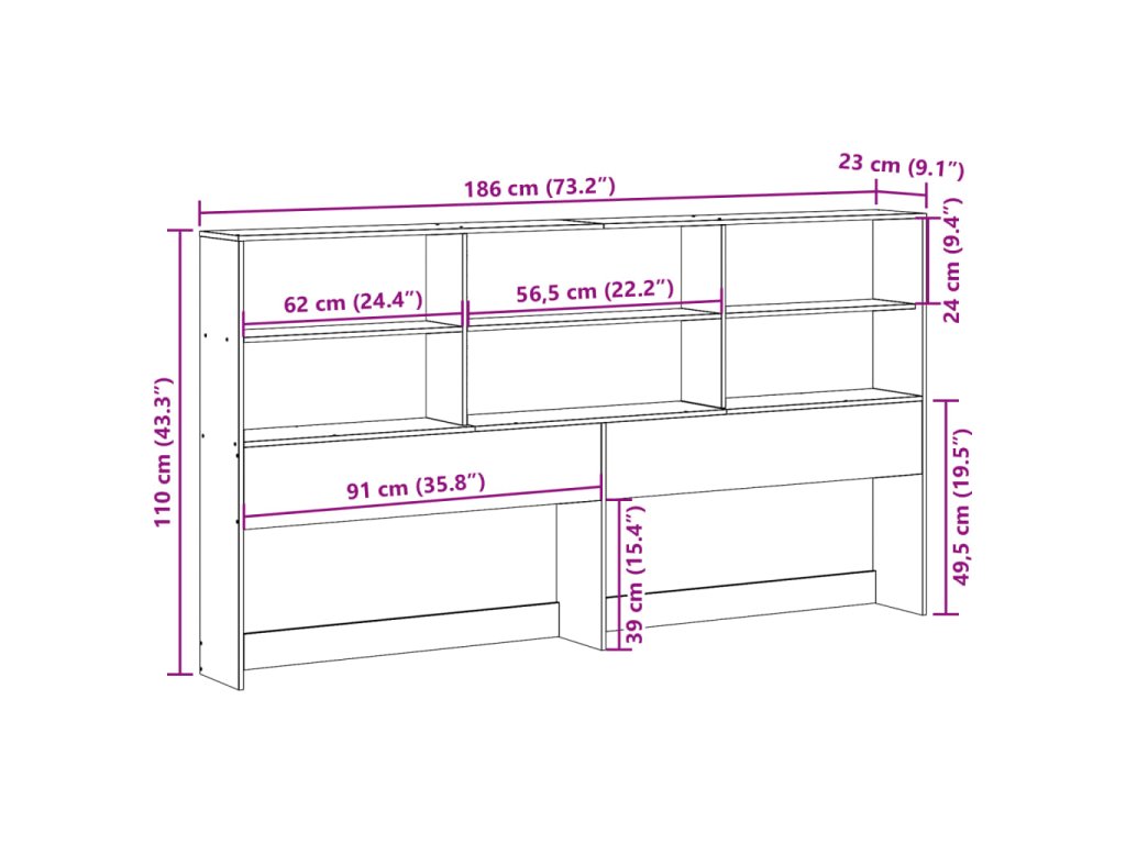 - Rozměry: 186 x 23 x 110 cm (Š x H x V)