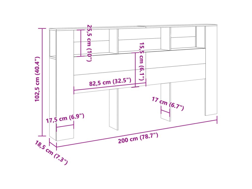 - Rozměry: 200 x 18,5 x 102,5 cm (D x Š x V)