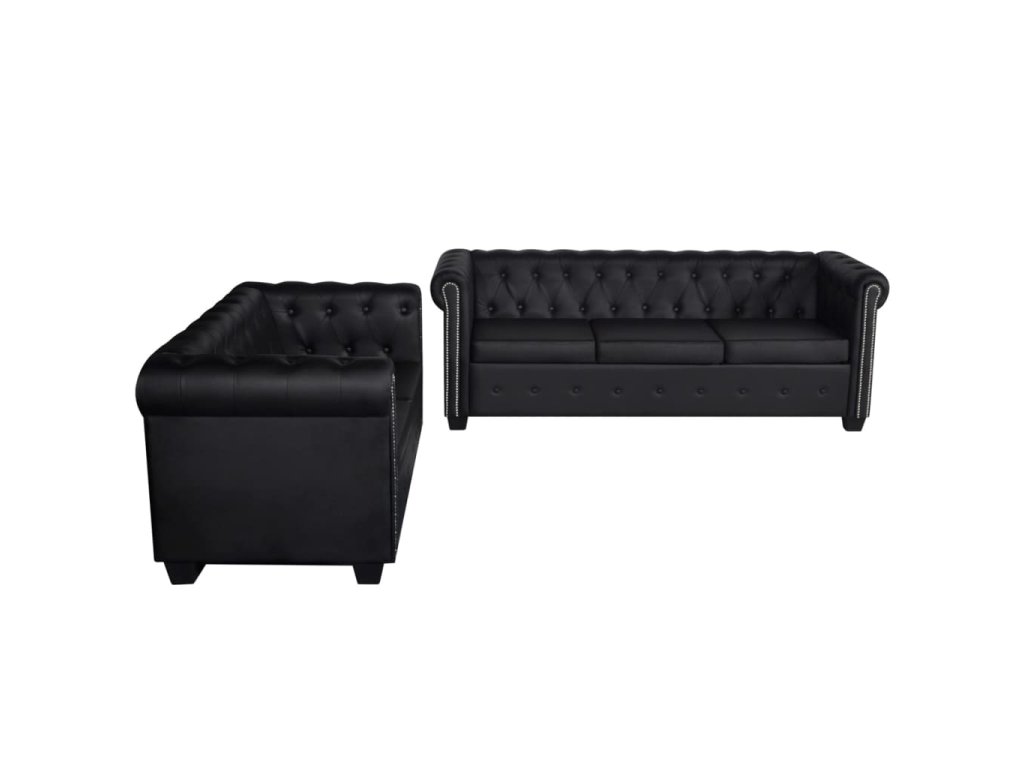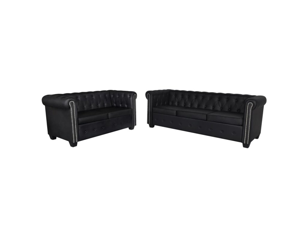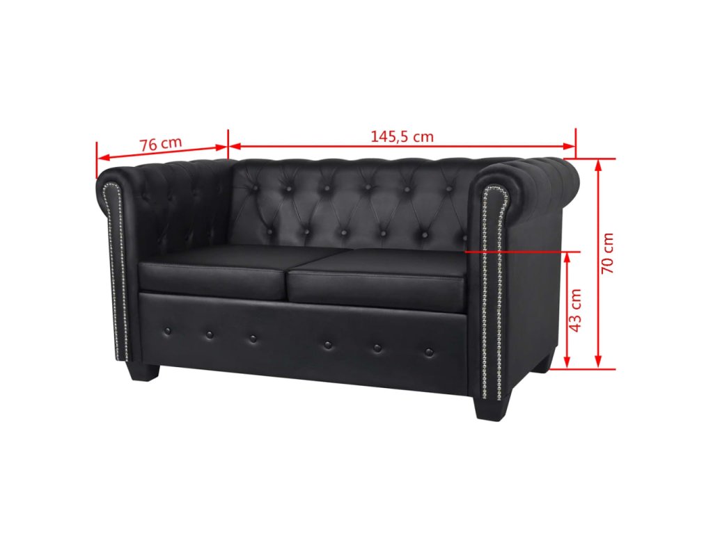 Tato sada sedaček Chesterfield se skládá z jedné 2místné a jedné 3místné pohovky a je perfektní kombinací pohodlí a sofistikovanosti a bude skvělým doplňkem do každého domova či kanceláře. Tato sada jedné 2místné a jedné 3místné pohovky s ozdobným prošíváním a cvočky a půvabně zakřivenými područkami dodá každému interiéru nádech luxusu a stylu.