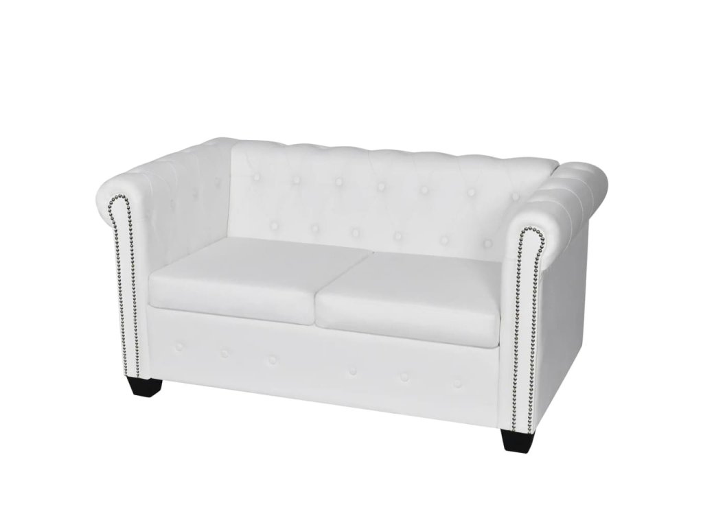 Tato sedačka Chesterfield je perfektní kombinací pohodlí a sofistikovanosti a bude skvělým doplňkem do každého domova či kanceláře. Tato 2místná pohovka s ozdobným prošíváním a cvočky a půvabně zakřivenými područkami dodá každému interiéru nádech luxusu a stylu.