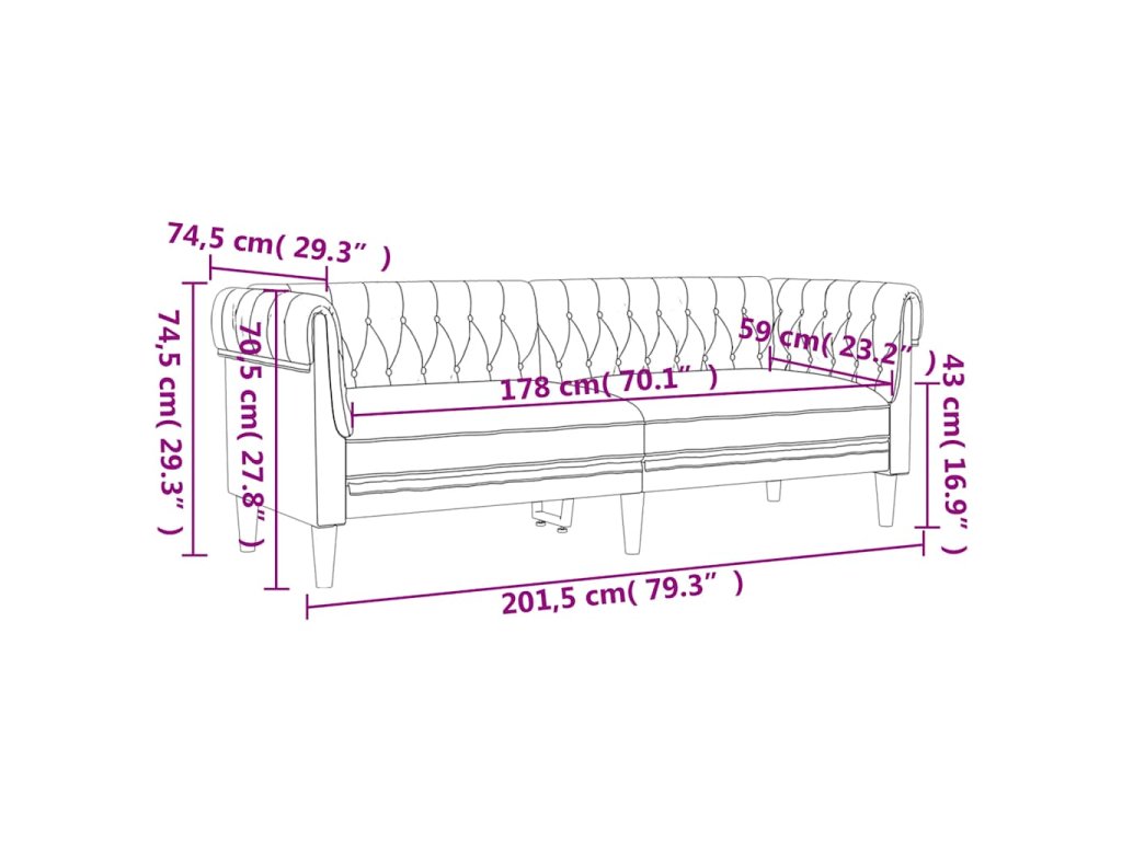 Tato 3místná chesterfield pohovka je skvělým místem pro povídání, čtení, sledování televize a relaxaci obecně. Bude ústředním bodem vašeho interiéru.